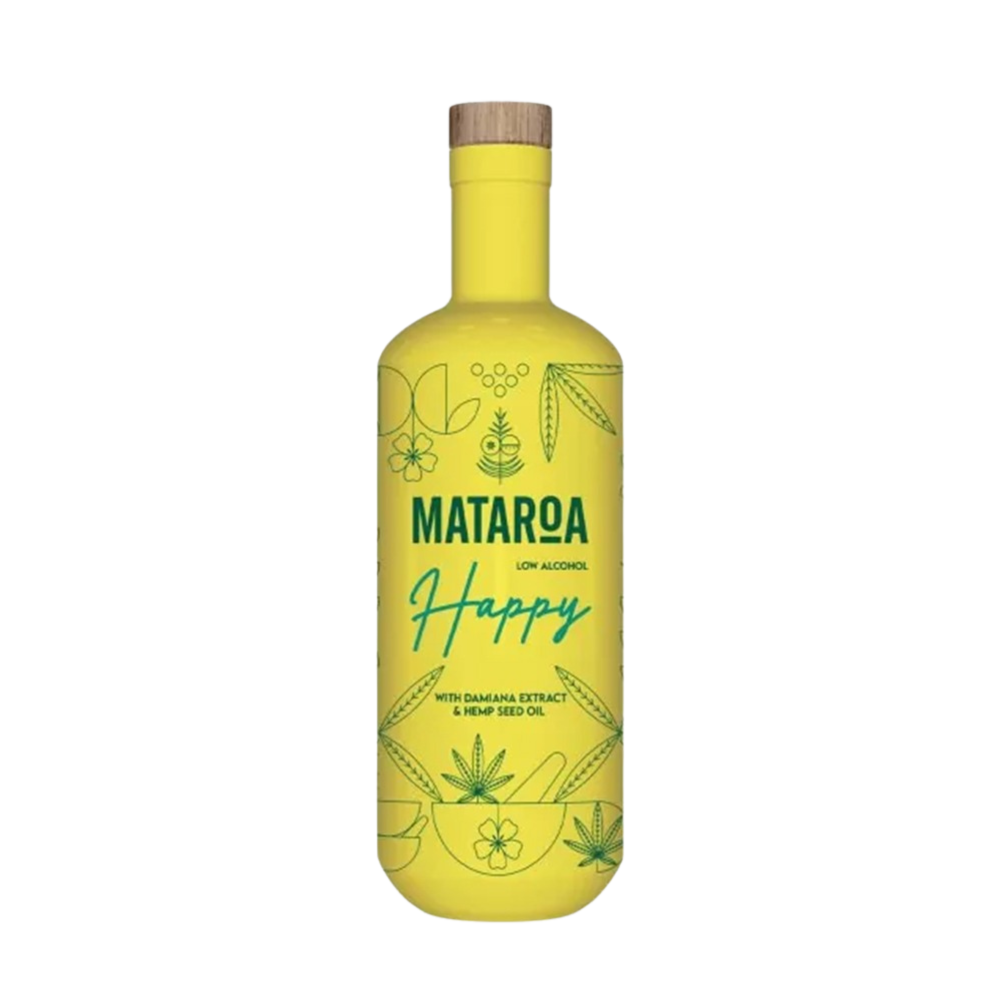 Mataroa Happy is a groundbreaking low-alcohol gin-based spirit that offers a sophisticated yet light alternative to traditional high-proof spirits. Infused with non-psychoactive cannabis oil, it provides gentle, natural energy without intoxicating effects. Complementing it is damiana extract, a treasured botanical from Mexico known for its uplifting, slightly minty-sweet aroma, vivid yellow tint, and subtle aphrodisiac charm.